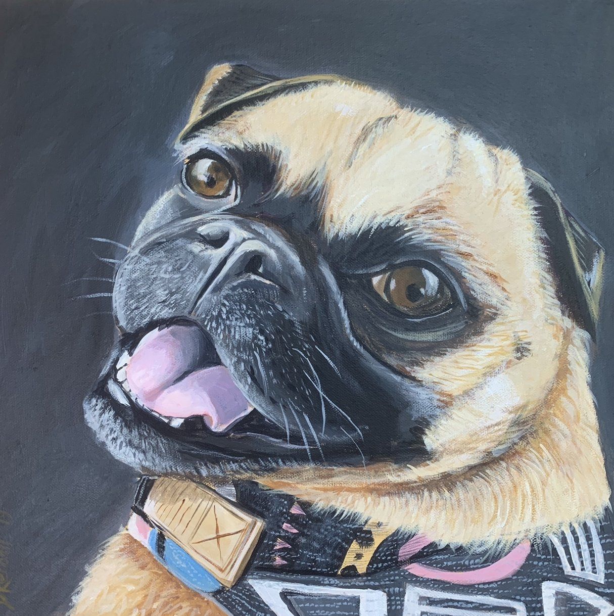 I usually work from photos of my "subjects" these will need to be decent quality and lit well - think about the pose of the portrait to highlight your pets best features or the angle at which you take the picture - please get in touch for advice on how to do this if your not sure